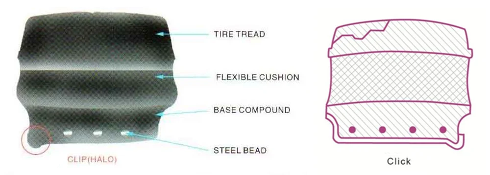 Veerkrachtige rubbersamenstelling zorgt voor een soepeler rijgedrag dan standaard massieve banden.